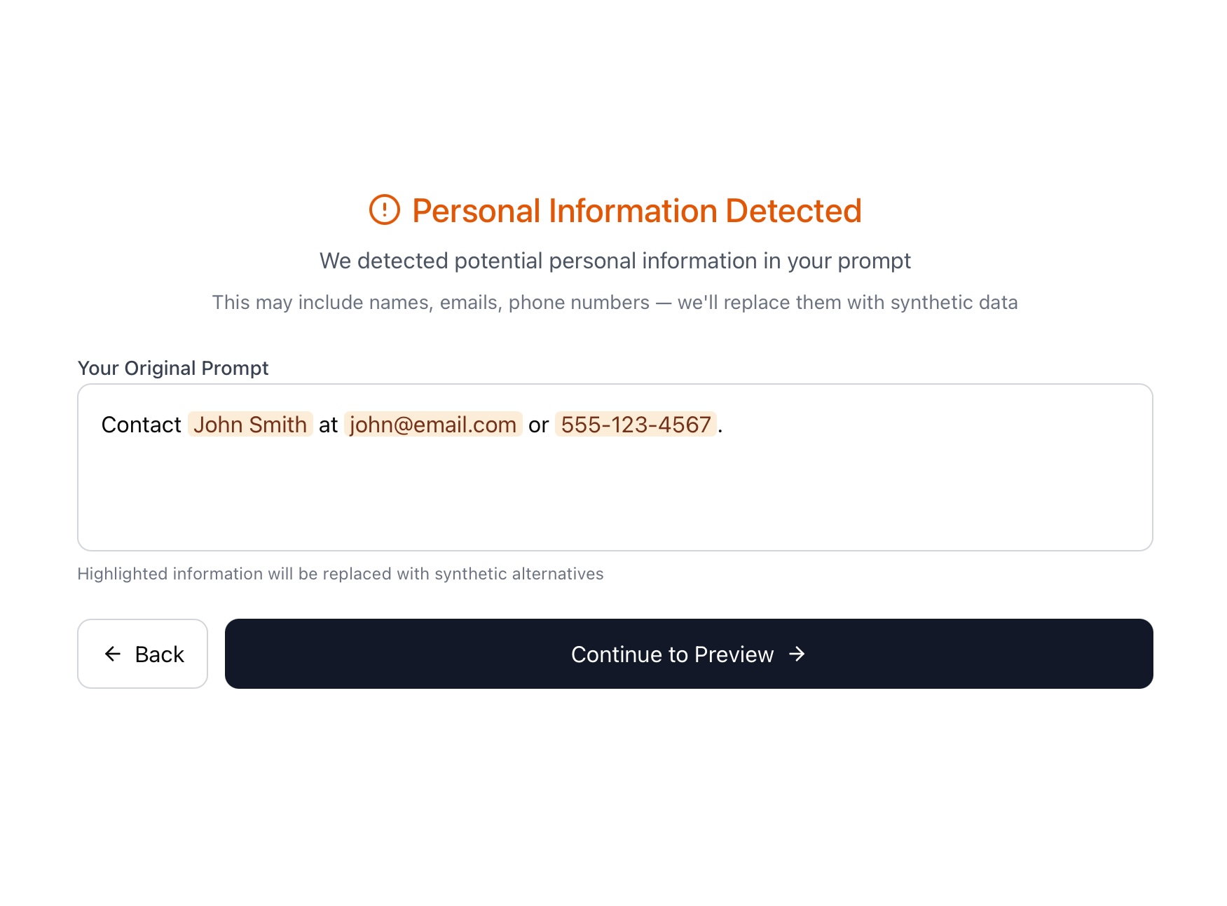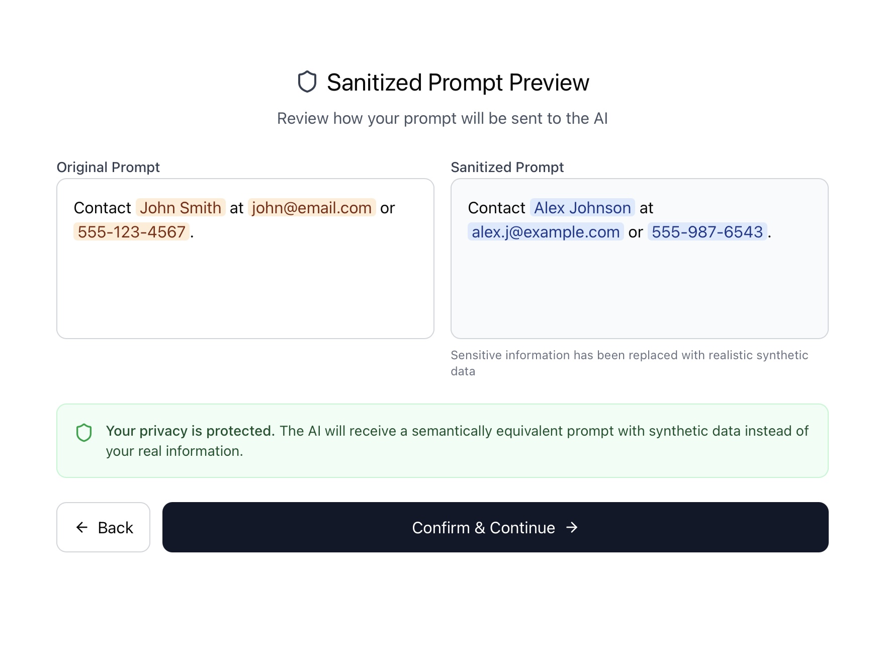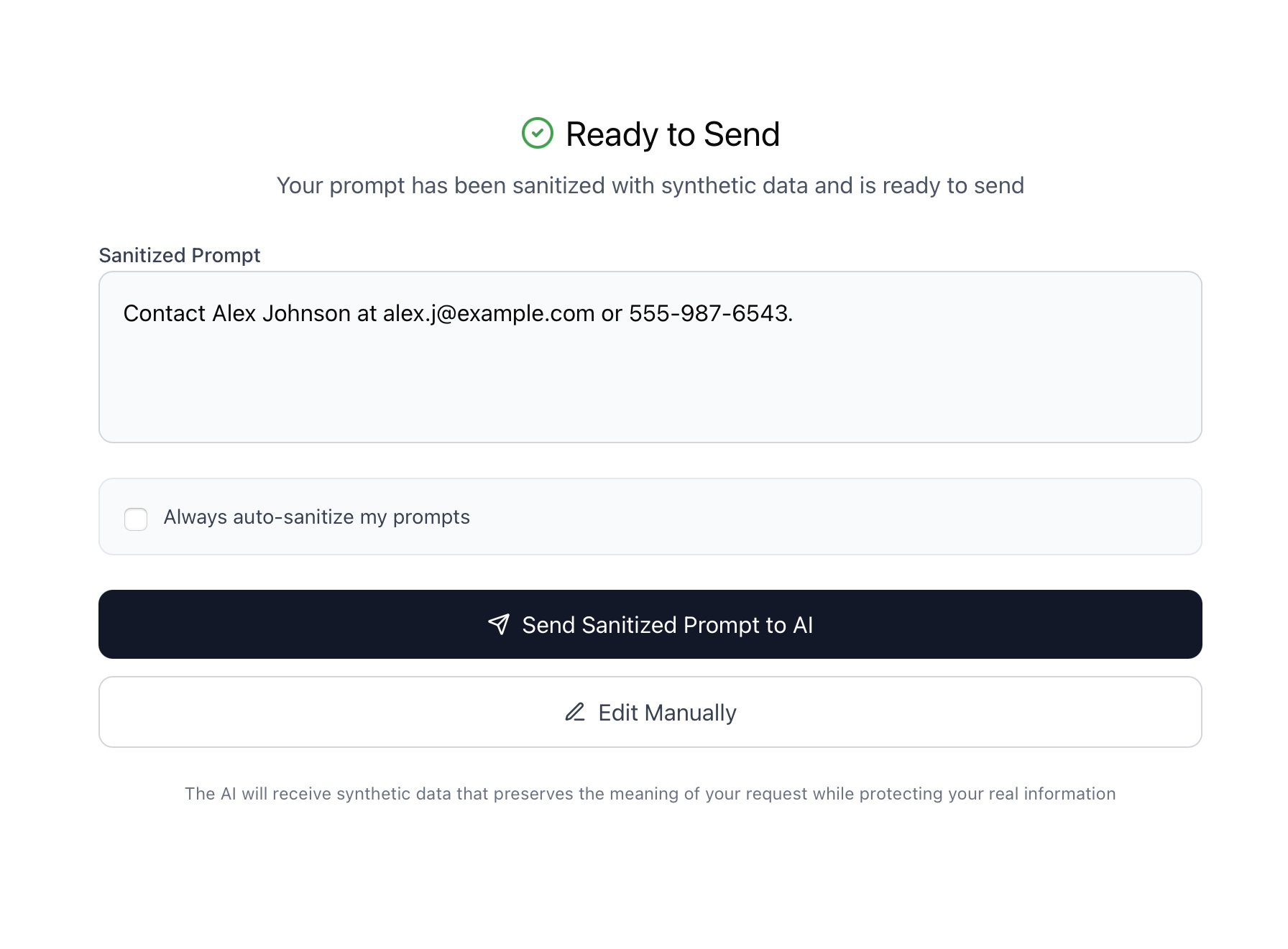 Automatically detect and redact names, emails, phone numbers, and other PII before sending prompts to ChatGPT or Claude.